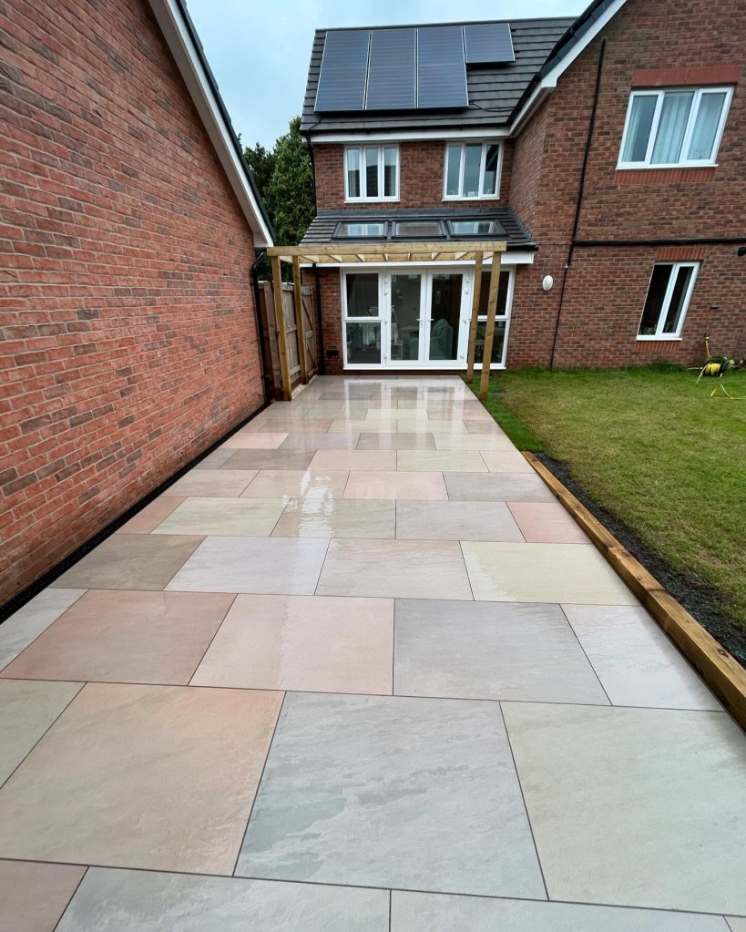 1️⃣ Paving Stones Direct, Raj Green Porcelain Paving: We laid these beautiful slabs that vastly extended the existing drab patio, lightened the garden and extended the outdoor space for this lovely family. Giving them a new patio that adds a cool, modern vibe to the garden.